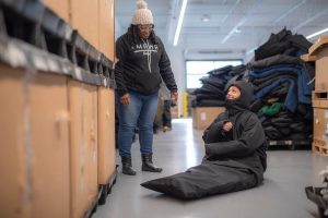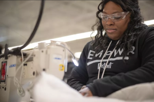 At The Empowerment Plan, Ebonie makes coats that double as sleeping bags, which are then distributed to homeless individuals. Not only does the organization provide employment to the homeless, but they also provide necessities in an effort to uplift and assist them.